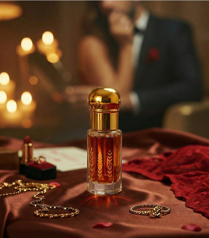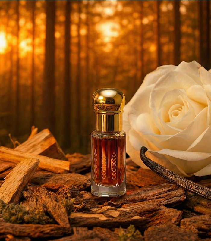 “Obsidian Glow Oud Oil” is inspired by obsidian’s depth and hidden radiance—rich, grounded, and quietly luminous. It opens with a touch of smoky spice, then melts into smooth amber and vanilla warmth. Incense and woods deepen the heart as oud reveals a tight, textured intensity. In the dry-down, resinous richness and a subtle animalic whisper create an enveloping, long-lasting trail—dark, refined, and irresistibly glowing.